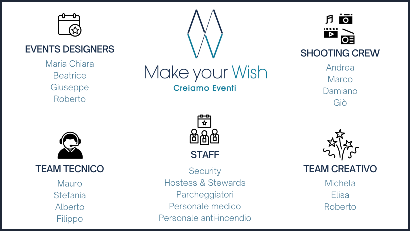 Make Your Wish – Creiamo Eventi nasce da un sogno: trasformare forti competenze personali, maturate negli anni, in un’agenzia di valore, fatta di persone e di soluzioni innovative.