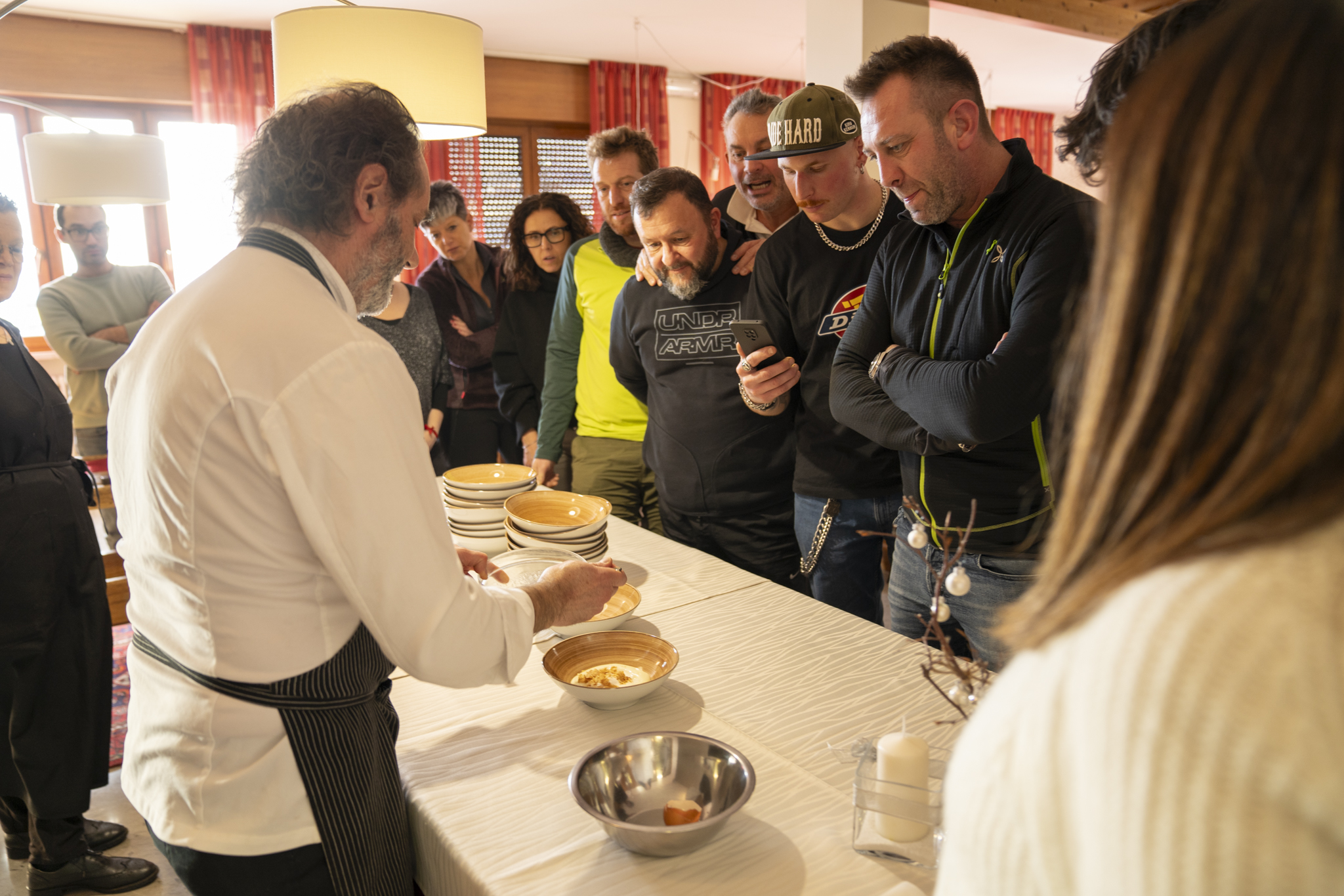 Questo percorso è stato un viaggio alla scoperta dei sapori autentici della montagna, con tappa nei luoghi di raccolta degli ingredienti tipici come il tarassaco di Conco, il sedano di Rubbio e il pregiato tartufo locale, che sono stati protagonisti del successivo momento gastronomico.