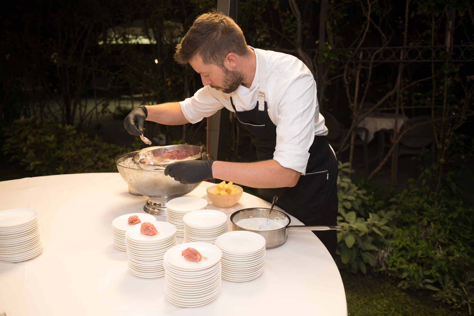 Abbiamo scelto la splendida location del Ristorante Alla Pergola a Sarcedo: aperitivo e cena gourmet a bordo piscina, con show-cooking per intrattenere e stupire gli ospiti.