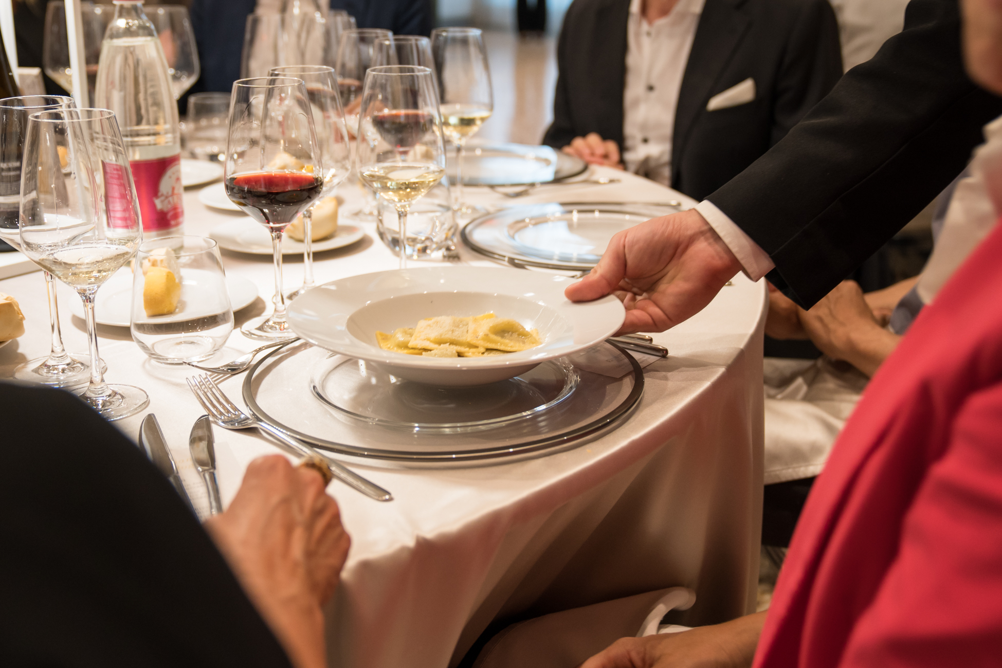 Il menù è stato perfettamente abbinato ai vini proposti e il nostro catering ha saputo curare l’allestimento mantenendo intatta l’atmosfera di regale classicità della sala.