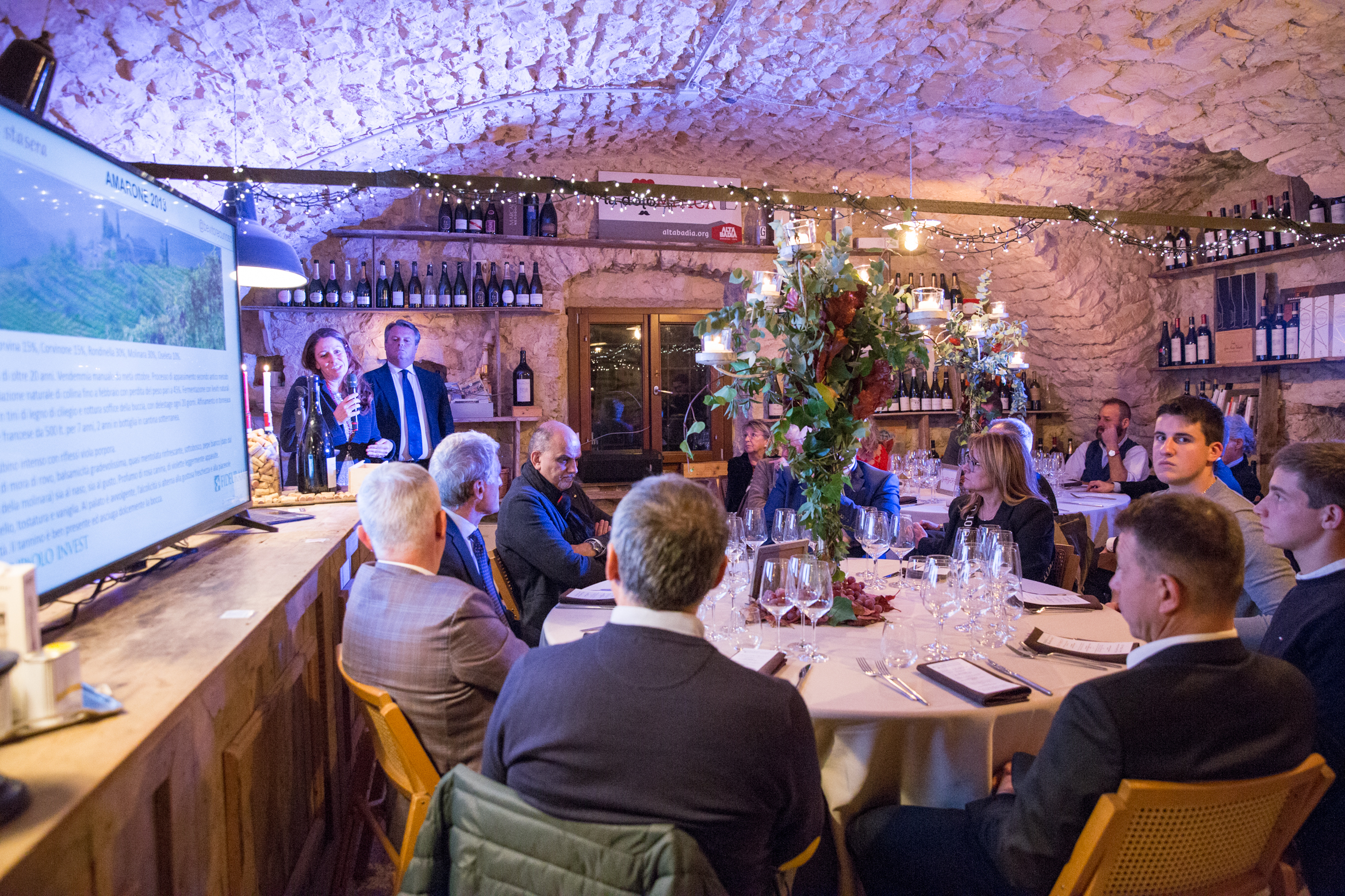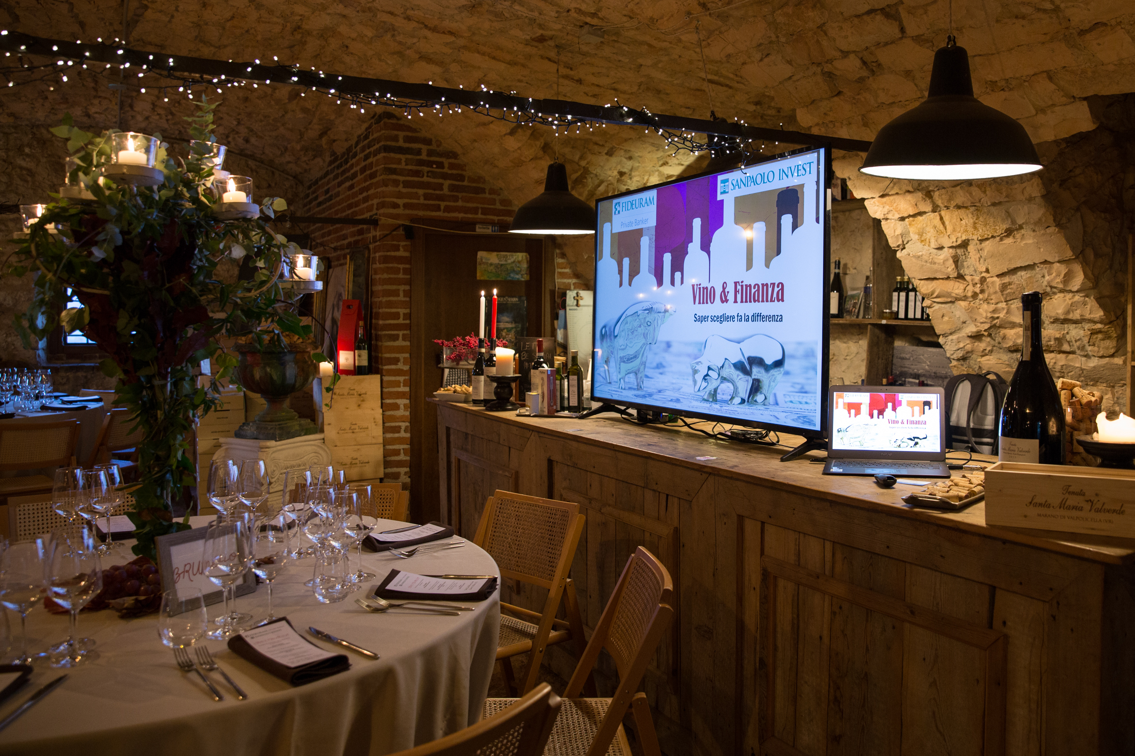 Qui, in Valpolicella, in un’iconica cantina di Amarone, abbiamo creato un’atmosfera ricercata e di classe per i clienti Private della banca.