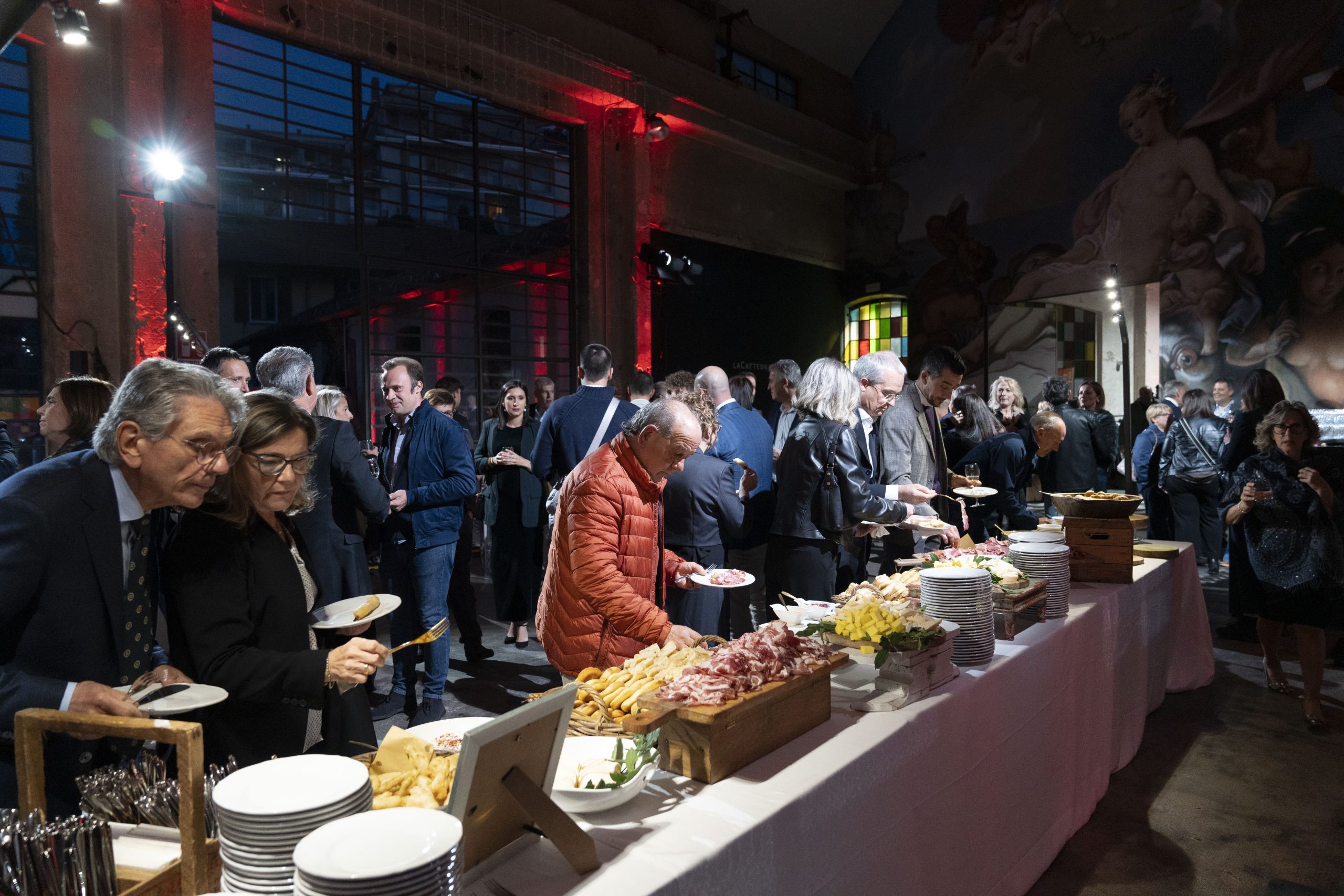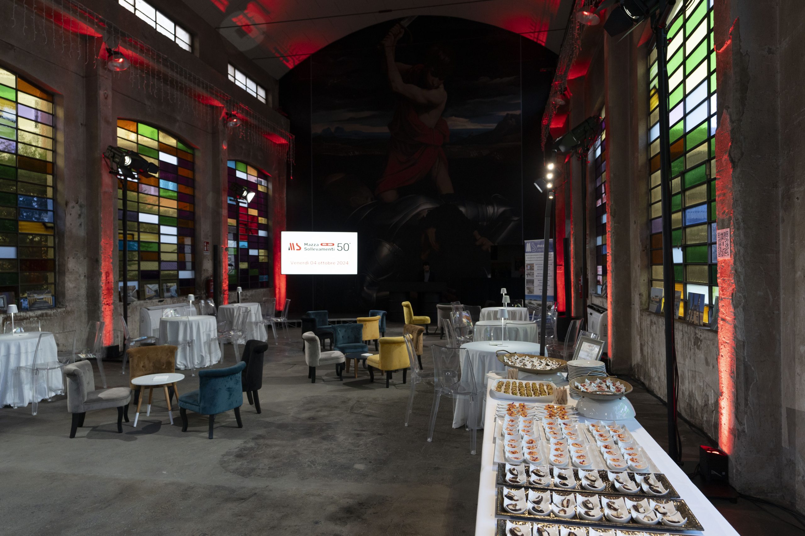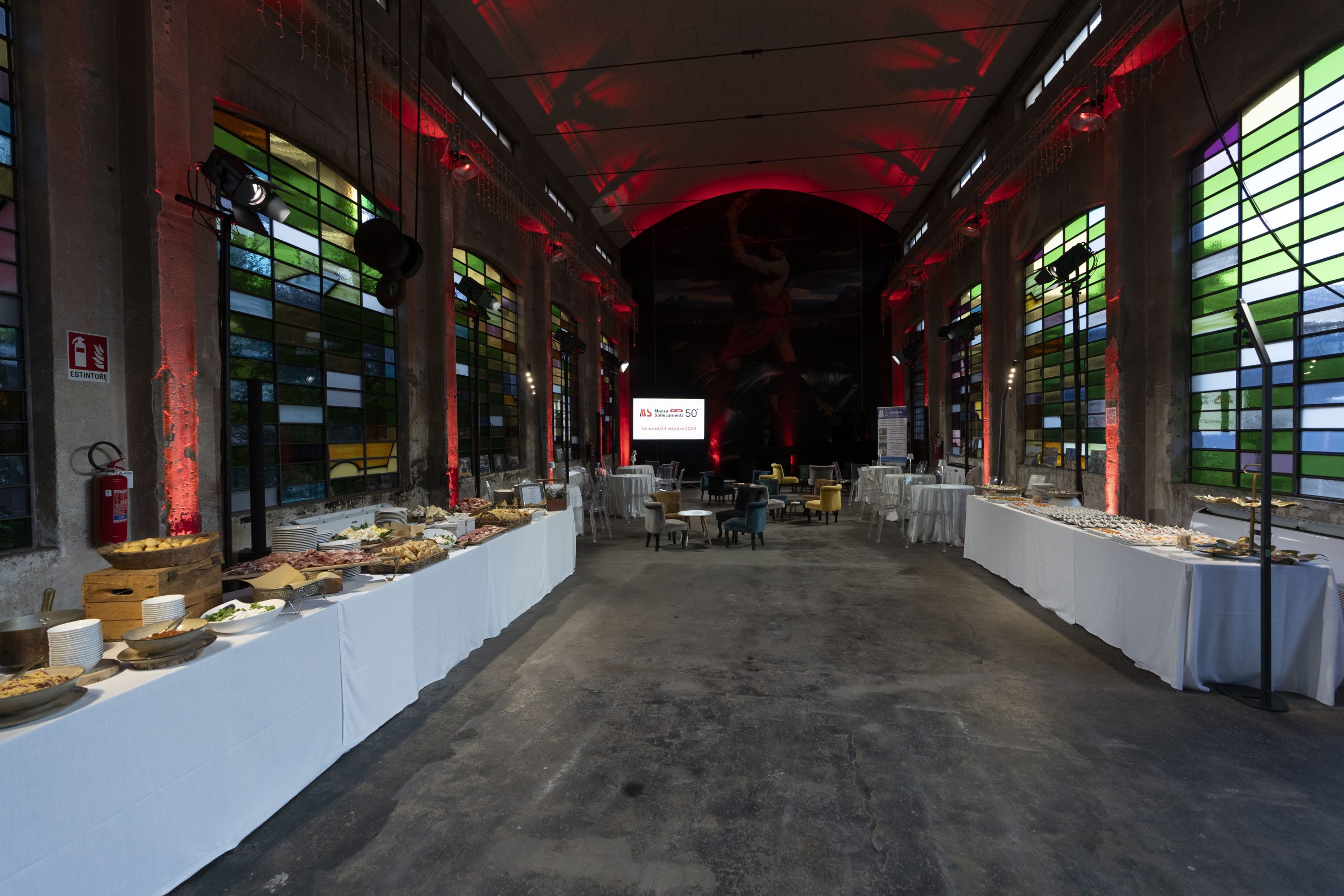La Cattedrale, location suggestiva e factory di artisti, ha accolto oltre 120 ospiti, tra clienti, fornitori e dipendenti. Una location così suggestiva ci ha permesso di utilizzare dei giochi di luce e allestimenti moderni, in grado di valorizzare la scenografia e creare un’atmosfera raffinata e al contempo industriale.