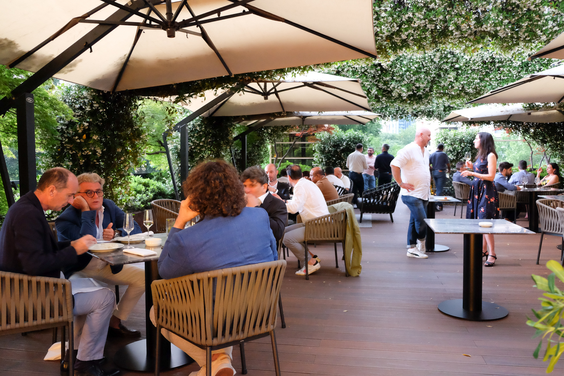 Per gli ospiti internazionali dell’azienda sono state riservate tre sale: la terrazza panoramica per il benvenuto, una magnifica sala all’interno per l’aperitivo e un accogliente cortile avvolto nel gelsomino.